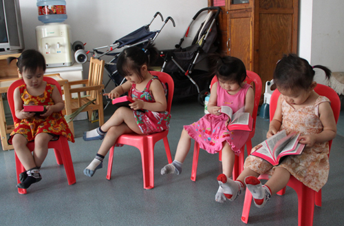 看到爸爸媽媽們到來,這些只有兩三歲的小蘿莉們高興壞了,他們的表演欲劇增。一會兒唱歌,一會兒跳舞,還像模像樣地看書來,小耀耀鉆進萬華媽媽的懷抱開心地不肯離開?吹竭@些遭遇不幸孩子們健康地成長,大家心里充滿安慰。