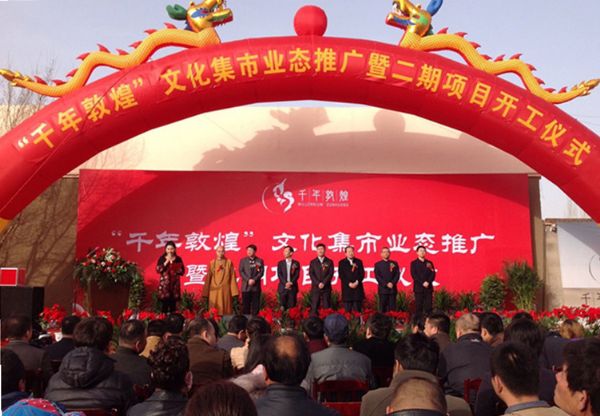 參加本次開工儀式的領(lǐng)導(dǎo)和嘉賓有:敦煌市政協(xié)主席曹理、敦煌市委副書記王永宏、敦煌市政府副市長張鼐、甘肅萬華實業(yè)集團有限公司總經(jīng)理、上海金翅鳥文化旅游發(fā)展有限公司董事長牛新偉、敦煌市月牙泉鎮(zhèn)書記宋濟民、中國建設(shè)銀行敦煌市支行行長何永斌、敦煌市佛教協(xié)會會長道證。