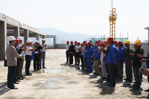 5月23日,在這樣一個晴空萬里,清風拂面的日子里,甘肅萬華職業(yè)培訓學校項目一期工程2#教學樓舉行了主體結構的封頂儀式。甘肅萬華實業(yè)集團董事長牛新民蒞臨現(xiàn)場,集團開發(fā)部總經(jīng)理杜牧拉、副總經(jīng)理李云喜及開發(fā)部、監(jiān)理部、項目部全體人員共同參加了封頂儀式。