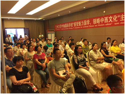 為了進一步在中加校園推進國學教育,增強中加學子對國學經(jīng)典認知和喜愛,也為廣大金城學子和家長提供一次重新體驗傳統(tǒng)文化的機會,蘭州萬華中加學校特于6月21日在白云賓館舉辦招生說明會暨以《弟子規(guī)》中的“入則孝”為主題的孝文化體驗課。上午9時,說明會在白云賓館6樓華盛頓廳準時舉行,場面相當熱烈。