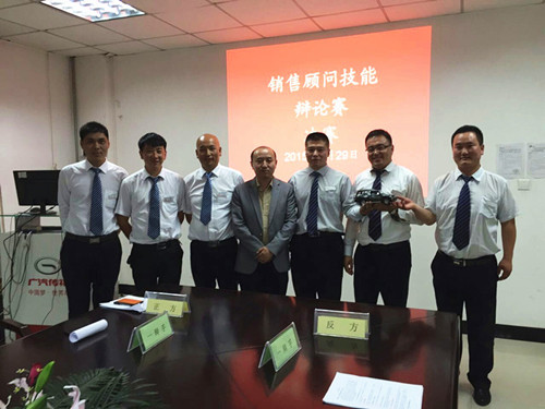 本次辯論正反方由抽簽選出,擔(dān)當(dāng)正方的是獵豹銷售部,反方為傳祺銷售部。當(dāng)日下午4時40分,比賽正式開始。辯論賽首先由雙方簡明扼要闡述各自觀點,接下來進入雙方攻辯階段。首先,正方提出,“都說態(tài)度決定一切,沒有積極向上、真誠待人的態(tài)度就不能做好后期的服務(wù)工作!狈捶接枰苑瘩g,“態(tài)度再好,客戶再滿意,就是不買車該怎么辦?只能運用技巧說服客戶購車,相比較態(tài)度,技巧更重要!庇纱耍p方辯手運用各自在日常工作中的經(jīng)驗,結(jié)合現(xiàn)場隨時發(fā)生變化的優(yōu)劣勢進行“你來我往”的對決。雙方辯手靈活的思維和縝密的邏輯推理,不時的贏得場下陣陣掌聲。