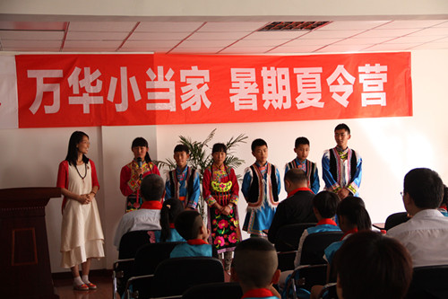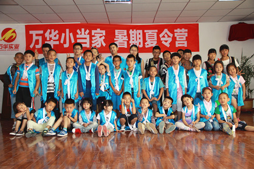 華嚴(yán)文化的義工老師為孩子們安顧好床位,下午4時(shí)整,開營(yíng)儀式正式舉行。萬華集團(tuán)總經(jīng)理牛新偉致辭表示,感謝華嚴(yán)文化的羅老師和“小水滴”體驗(yàn)營(yíng)張莉老師。“在兩位老師的全力幫助下,促成了本期夏令營(yíng)的順利舉辦。張老師和羅老師多年來致力于弘揚(yáng)優(yōu)秀的民族本土文化,并通過長(zhǎng)期堅(jiān)持不懈的實(shí)踐,獲取了非常寶貴的經(jīng)驗(yàn),是可敬的人。城市里長(zhǎng)大的孩子重學(xué)習(xí),輕自理,生活實(shí)踐很少,不懂得分擔(dān),希望通過‘萬華小當(dāng)家’夏令營(yíng)的舉辦,讓萬華的孩子從小當(dāng)家課程的學(xué)習(xí)體驗(yàn)開始,從小當(dāng)家最終做到大當(dāng)家!”