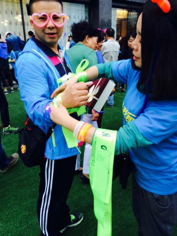 為體現(xiàn)本次活動健康、快樂、充滿活力的奔跑主題,16580為參與者準備了寫有“一路我?guī)湍?6580”字樣的綠絲帶。