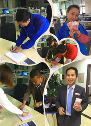 為了使員工的父母能夠在重陽節(jié)當(dāng)天感受到企業(yè)和工會的關(guān)愛, 9月21日重陽節(jié)當(dāng)天下午,工會工作人員專程前往集團(tuán),將慰問金發(fā)放到每一位員工的手上!斑@是工會專門為老人家準(zhǔn)備的福利,請大家轉(zhuǎn)達(dá)工會對老人的祝福,把錢送到父母的手中。”工作人員不時跟大家說明。一位員工領(lǐng)完慰問金后非常感慨地說道:“我的老父親今年已經(jīng)72歲了,我這就打個電話給他們,說我的單位給他們發(fā)錢了!”另一位員工說“逢年過節(jié)的時候,單位都給我們發(fā)福利,但是給父母發(fā)福利的,我這還是頭一回領(lǐng),真的很感謝你們!”