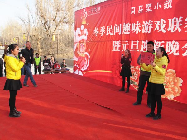 月牙泉小鎮(zhèn)冬季民間趣味游戲聯(lián)賽自2015年11月22日開始以來,受到廣大市民、社會團體和游客的喜愛及積極參與。經(jīng)過一個多月的趣味游戲比賽,共有180多個團隊、500多人次進行角逐,10多個團隊入圍半決賽。1月1日,月牙泉小鎮(zhèn)冬季民間趣味游戲聯(lián)賽總決賽在小鎮(zhèn)中心廣場進行最后角逐。