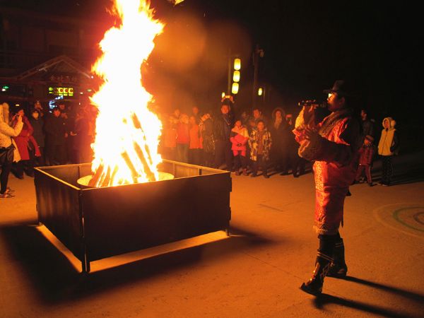 下午7時30分,客人們品嘗美食之后,迎新年篝火晚會在月牙泉小鎮(zhèn)中心廣場正式開始。紅紅的篝火燃燒起來了,歡快的音樂響起來了,由千年敦煌·月牙泉小鎮(zhèn)商戶才旦帶頭,客人們圍成一個圈,圍著篝火唱著、跳著、陶醉著……