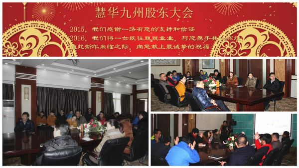 慧華九州總經(jīng)理姚生艷主持會(huì)議并對2015年公司的經(jīng)營狀況、股權(quán)分紅 、股權(quán)認(rèn)繳等做了匯報(bào),對公司2015年六件大事的回顧客觀、深刻,引人反思;對過去一年的成績與不足評(píng)價(jià)中肯,實(shí)事求是。員工股東們圍繞姚總的工作報(bào)告展開熱烈的討論,確立分紅方案來實(shí)現(xiàn)股東利益的最大化成為了本次股東會(huì)議最熱門的話題,到會(huì)的員工股東們對2015年的投資回報(bào)率表示滿意。股東會(huì)議一致通過了2016年度投資回報(bào)率、經(jīng)營團(tuán)隊(duì)負(fù)責(zé)人及經(jīng)營團(tuán)隊(duì)獎(jiǎng)勵(lì)方案三項(xiàng)決議。