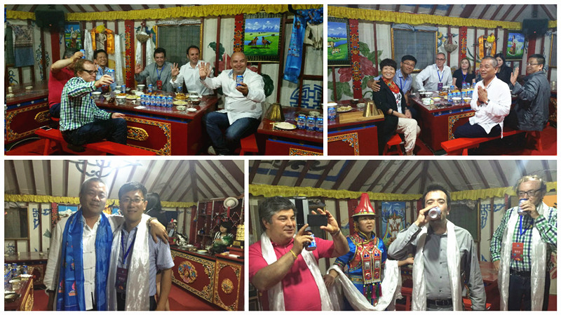晚上8點,隨著晚會的開始,月牙泉小鎮(zhèn)裕固族風情園的氣氛逐漸升溫。牛新偉和西班牙友人們圍桌而坐,聊天、暢飲。因為西班牙友人有隨行的翻譯人員,所以溝通起來沒有障礙。他們一邊欣賞敦煌文藝演出,一邊品嘗月牙泉小鎮(zhèn)的各色小吃,體驗與感受著月牙泉小鎮(zhèn)的獨特魅力。