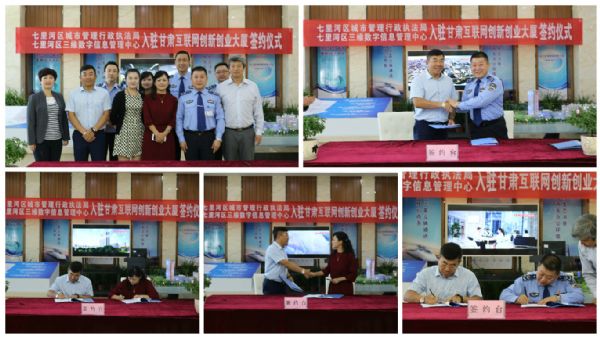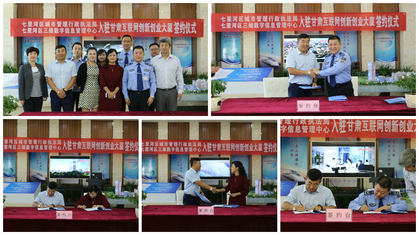 9月8日上午10時,甘肅互聯(lián)網(wǎng)創(chuàng)新創(chuàng)業(yè)大廈首批入駐政府單位簽約儀式在大廈商務(wù)展示中心如期舉行。蘭州市七里河區(qū)城市管理行政執(zhí)法局局長朱永強、副局長管永祥,蘭州市七里河區(qū)三維數(shù)字信息管理中心主任劉蘊潮、副主任蔣海燕,甘肅萬華實業(yè)集團有限公司董事長牛新民、開發(fā)部總經(jīng)理杜牧拉等嘉賓出席了簽約儀式。簽約儀式現(xiàn)場,七里河區(qū)城市管理行政執(zhí)法局、七里河區(qū)三維數(shù)字信息管理中心先后簽訂了入駐大廈協(xié)議。