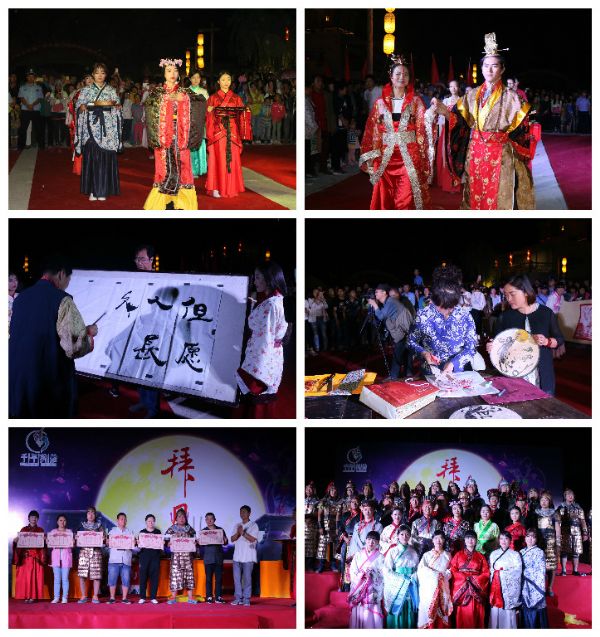 當(dāng)晚20時(shí),傅有宏的書法“但愿人長久,千里共嬋娟”、潘海萍木板雕刻、何克鳳現(xiàn)場剪紙、宋秀蓮量體裁衣,素慧齋漢裝走秀等表演贏得了觀眾陣陣掌聲。伴隨著優(yōu)美的《踏歌舞》,月牙泉小鎮(zhèn)丙申仲秋拜月會拉開序幕。