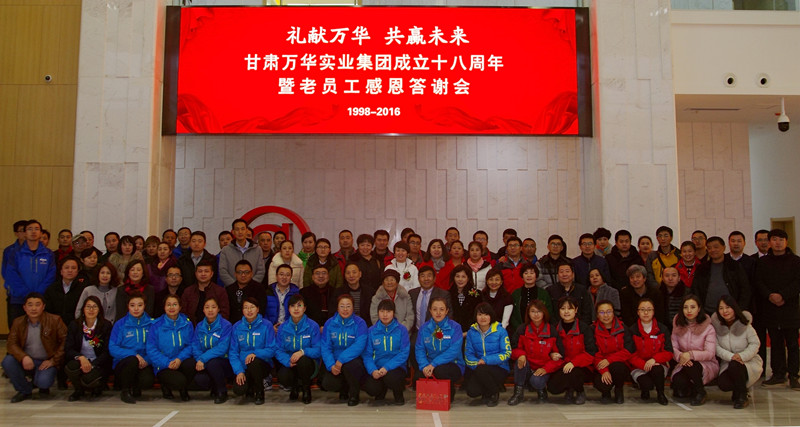 萬華集團創(chuàng)新發(fā)展十八年,每年12月份都會邀請老員工歡聚一堂,大伙聚在一起,聊一聊,談一談今年的收獲和來年的展望。甘肅萬華實業(yè)集團成立十八周年暨老員工感恩答謝會于12月29日下午5時在甘肅互聯(lián)網(wǎng)創(chuàng)新創(chuàng)業(yè)大廈拉開帷幕。本次答謝會以“禮獻(xiàn)萬華共贏未來”為主題,甘肅萬華實業(yè)集團有限公司董事長牛新民先生,萬華集團董事張惠英、虞雪梅,董事會特邀嘉賓,圣方舟律師事務(wù)所代表,萬華集團各公司高管和萬華老員工共計108人出席本次答謝會。