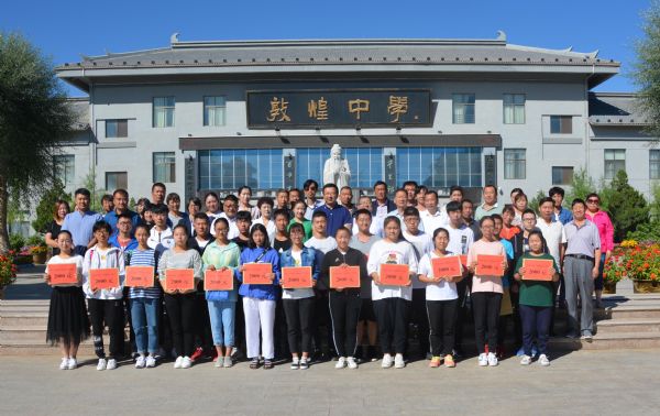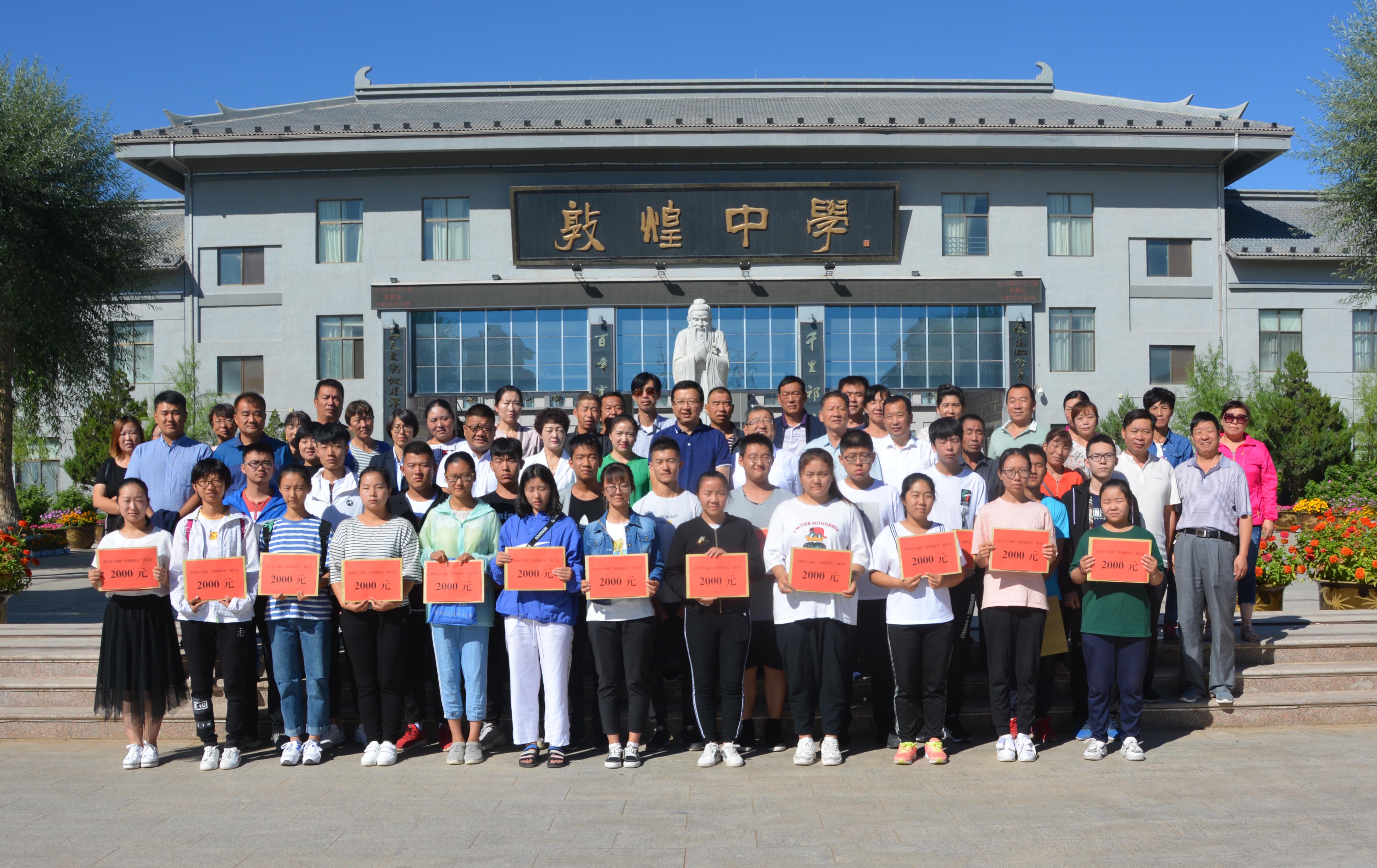 8月17日上午10時,敦煌市工商聯(lián)“光彩助學行”活動在敦煌中學舉行。敦煌千年古城文化發(fā)展有限公司副總經(jīng)理牛英霓、甘肅絲路敦煌山莊酒店有限責任公司總經(jīng)理杜亞東等9家企業(yè)和今年新考入大學的24名學生及家長參加了捐助活動。