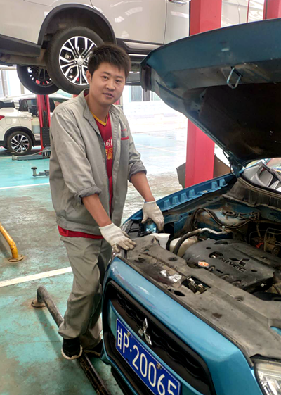 畢業(yè)后,他在一家小型汽車修理廠認真工作,業(yè)余時間還會翻閱一些關于汽車維修的專業(yè)書籍充實提升自己。憑著勤勞踏實、用心鉆研的學習勁兒,兩年內他從一個沒有任何實修經驗的學徒成長為汽車維修專業(yè)技師。2013年3月,他憑借過硬的專業(yè)技術加入了甘肅萬華汽車銷售有限公司。