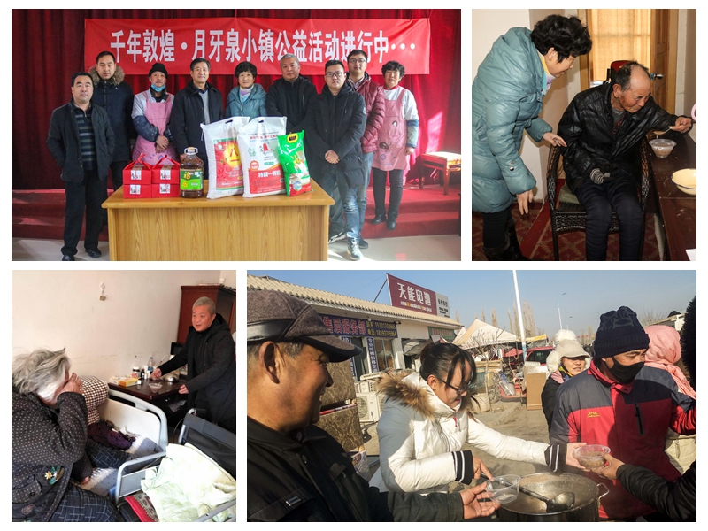 在陽關(guān)老年公寓,千年敦煌·月牙泉小鎮(zhèn)項(xiàng)目總監(jiān)熊秀霞和客房運(yùn)營管理中心運(yùn)營總監(jiān)郭龍帶著盛好的粥來到行動(dòng)不便的老人身邊,熱情地說道:“今天是臘八節(jié),月牙泉小鎮(zhèn)來給你們送臘八粥了!過完臘八就是年,提前祝你們新年快樂!”老人們聽到后,眼含淚光,有的擦拭著眼角,喃喃地說:“是熱的,謝謝,謝謝……”