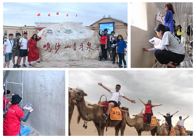 下午5時(shí),在西美老師的率領(lǐng)下,學(xué)員們來到國家5A級景區(qū)鳴沙山·月牙泉寫生、騎駱駝、爬沙山、觀賞月牙泉,領(lǐng)略沙漠與清泉相伴為鄰的奇景,感嘆大自然的鬼斧神工。
