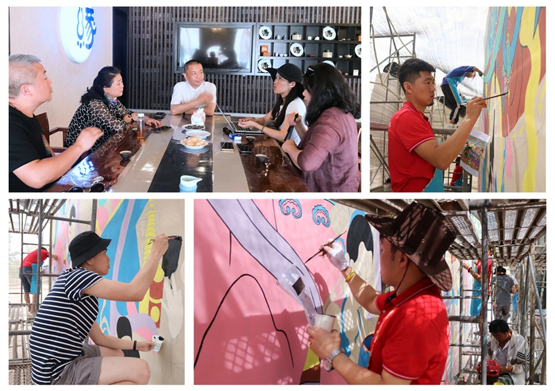 6月26日,“千年敦煌·無聲守護(hù)”公益研學(xué)之旅第五天,西美研學(xué)團(tuán)繼續(xù)開展實(shí)地壁畫創(chuàng)作。中國華夏文化遺產(chǎn)基金會千年敦煌專項(xiàng)基金管委會主任、敦煌千年古城文化發(fā)展有限公司董事長牛新偉與西安美術(shù)學(xué)院特殊教育藝術(shù)學(xué)院書記李玉健及相關(guān)陪同人員,洽談了藝術(shù)研學(xué)項(xiàng)目合作事宜。