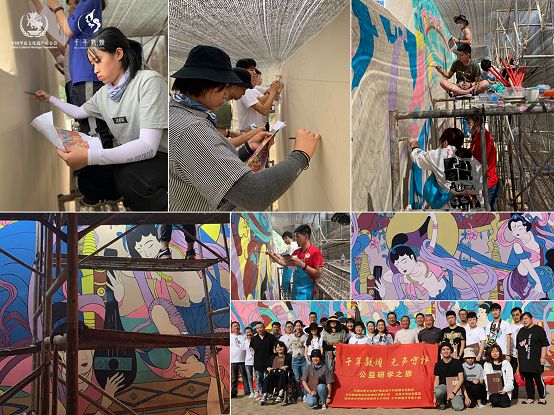 此次公益研學(xué)還開設(shè)了壁畫創(chuàng)作實(shí)踐課程。在老師的指導(dǎo)下,學(xué)員們結(jié)合敦煌壁畫飛天的典型特征、月牙泉小鎮(zhèn)特色以及對大音希聲的感悟,創(chuàng)作了全新壁畫作品——《梵韻》,為敦煌文化的傳承添上一筆獨(dú)特而靚麗的風(fēng)景線。同時(shí)借助畫作,呼吁社會各界人士,關(guān)注千年敦煌的文化傳承,關(guān)注聽力障礙群體的藝術(shù)才華和社會價(jià)值。