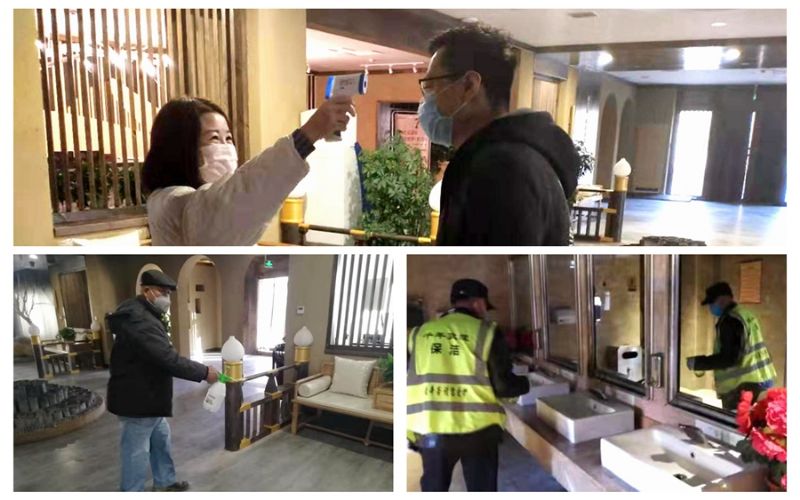 每天,值班人員定時測量上報體溫,及時、全面做好員工和商戶的疫情知識培訓和自我保護宣傳工作。為避免人群聚集導致的傳染風險,景區(qū)還通過電子屏滾動播放,提醒市民加強防范。