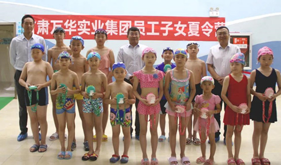 “每年的夏天,萬(wàn)華集團(tuán)都會(huì)為員工的孩子們準(zhǔn)備一場(chǎng)生動(dòng)活潑的夏令營(yíng)。游泳是一項(xiàng)生存技能,也是一項(xiàng)有益身心健康的體育運(yùn)動(dòng)。希望通過(guò)夏令營(yíng),小朋友們能學(xué)好游泳技能,養(yǎng)成游泳的良好習(xí)慣,在未來(lái)的成長(zhǎng)中,把鍛煉身體、堅(jiān)守健康作為生活中一件重要的事情去堅(jiān)持。愿健康、快樂(lè)成為未來(lái)每一位小朋友乘風(fēng)破浪、勇往直前的力量源泉!迸P旅癜l(fā)表開(kāi)營(yíng)儀式致辭并宣布開(kāi)營(yíng)。隨后,牛新民為參加夏令營(yíng)的小朋友們贈(zèng)送了精美禮物。