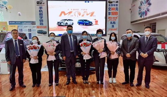 上午9時,青海金易達(dá)汽車銷售服務(wù)有限公司執(zhí)行董事宿曉中、總經(jīng)理趙艷麗,表彰了“優(yōu)秀媽媽”馬艷妮、李珍、魏美恒、鄭永佳、陳瑩、薛瑩瑩,并送上代表節(jié)日祝福的鮮花。